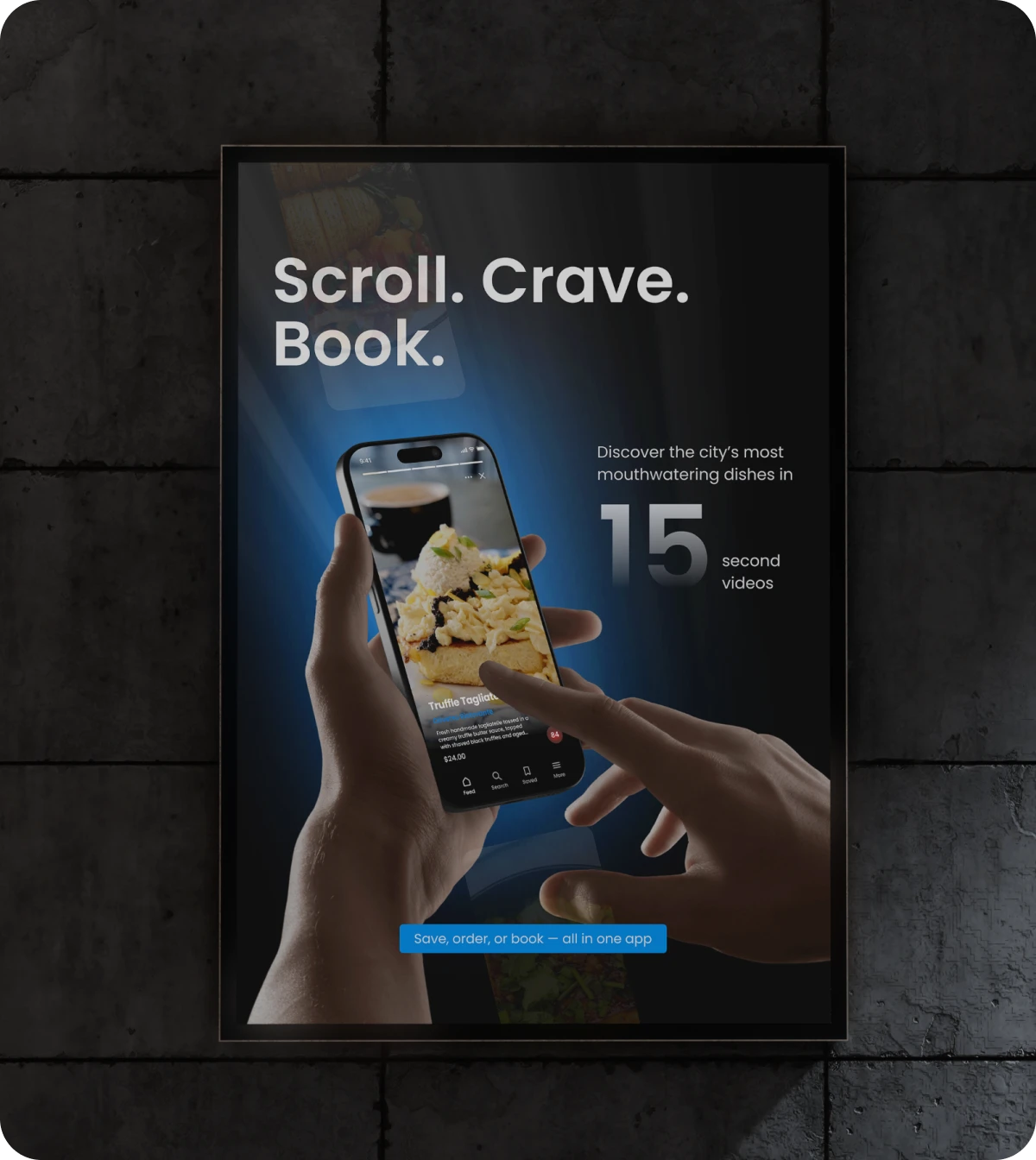 We aimed to design a food experience that feels natural, exciting, and tailored to modern user behavior. The challenge was to remove friction and make choosing a meal feel more like discovering a craving.